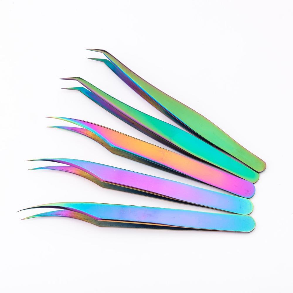 12cm रंगीन बरौनी विस्तार चिमटी स्टेनलेस स्टील Pincette चलाओ मात्रा निजी लेबल बरौनी विस्तार चिमटी
